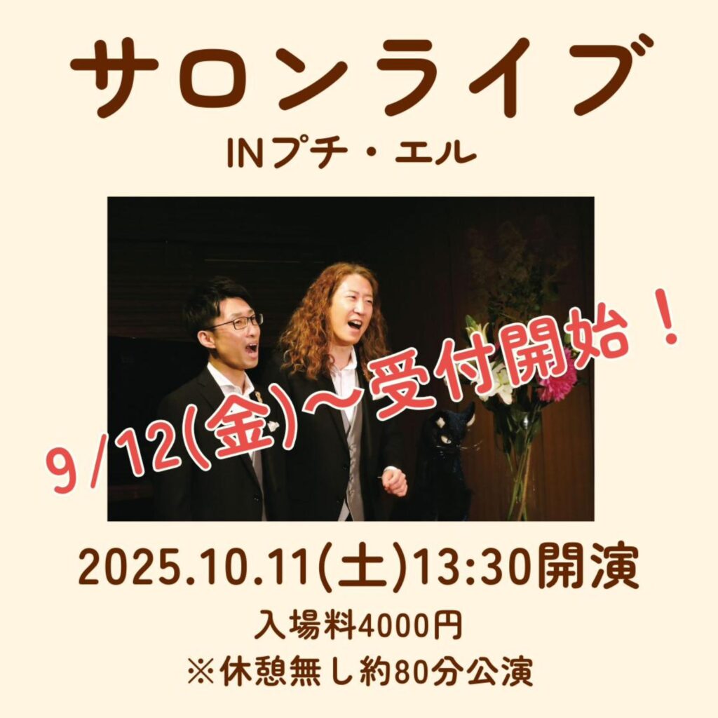 10/11(土)13:30から、大阪市は天満橋の プチ・エルにて「HAMORI-BE サロンライブ 」を開催します!